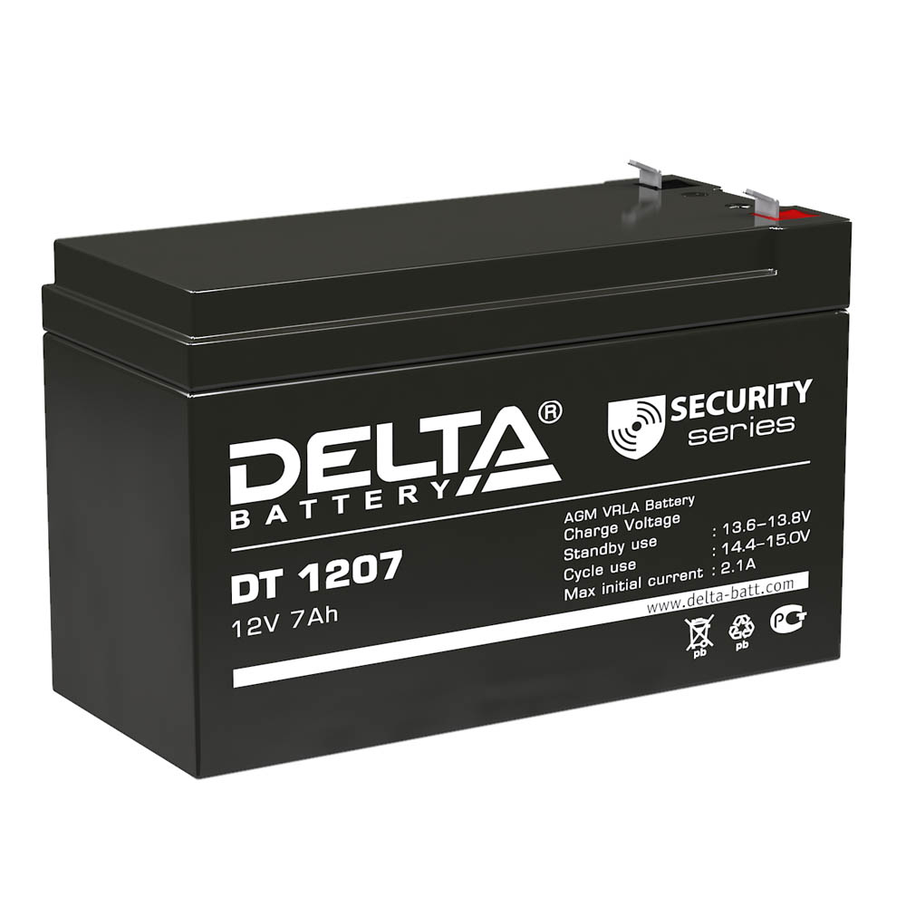 Аккумуляторная батарея для ИБП Delta DT 1207 представляет собой свинцово-кислотный аккумулятор для слаботочной системы бесперебойного питания. Модель обладает всем необходимым для стабильного функционирования ИБП и исправного исполнения его основной функции. Аккумуляторная батарея Delta DT 1207 изготавливается по технологии AGM и обладает солидной емкостью 7Ач, что гарантирует подключенной к источнику бесперебойного питания технике возможность работы в течении достаточного времени после незапланированного отключения энергии. Модель совместима со всеми ИБП, поддерживающими установку аккумуляторов с размером 65x95x151 мм и их подключение при помощи T1/F1 (под клемму 187).