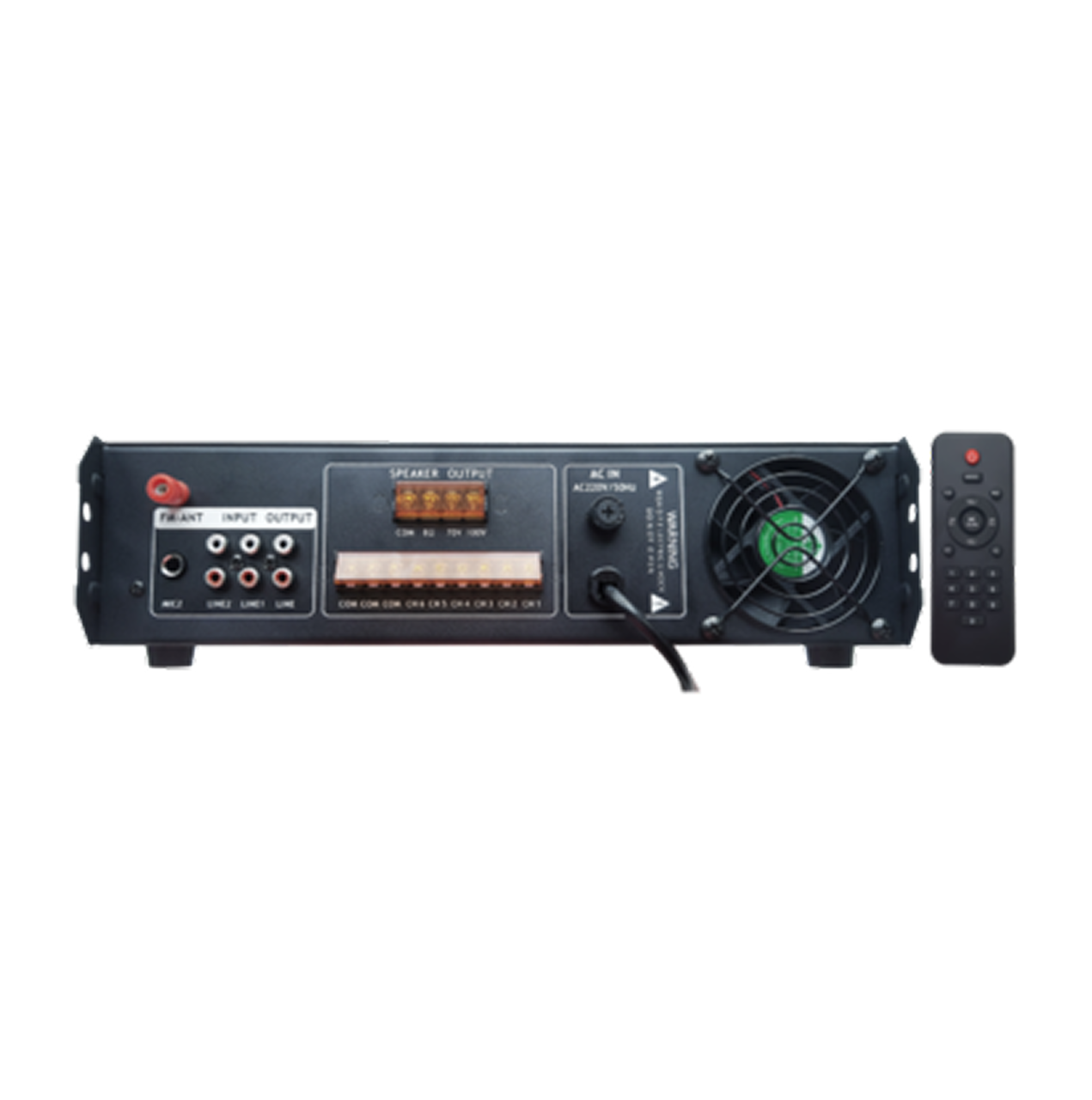 Компактный трансляционный микшер-усилитель 120 Вт, 6 зон, 100В, USB, SD карта, FM-тюнер, Bluetooth, mp3, 2 микрофонных / 2 линейный входа, 1 линейный выход, кнопка привлечения внимания «Chime»