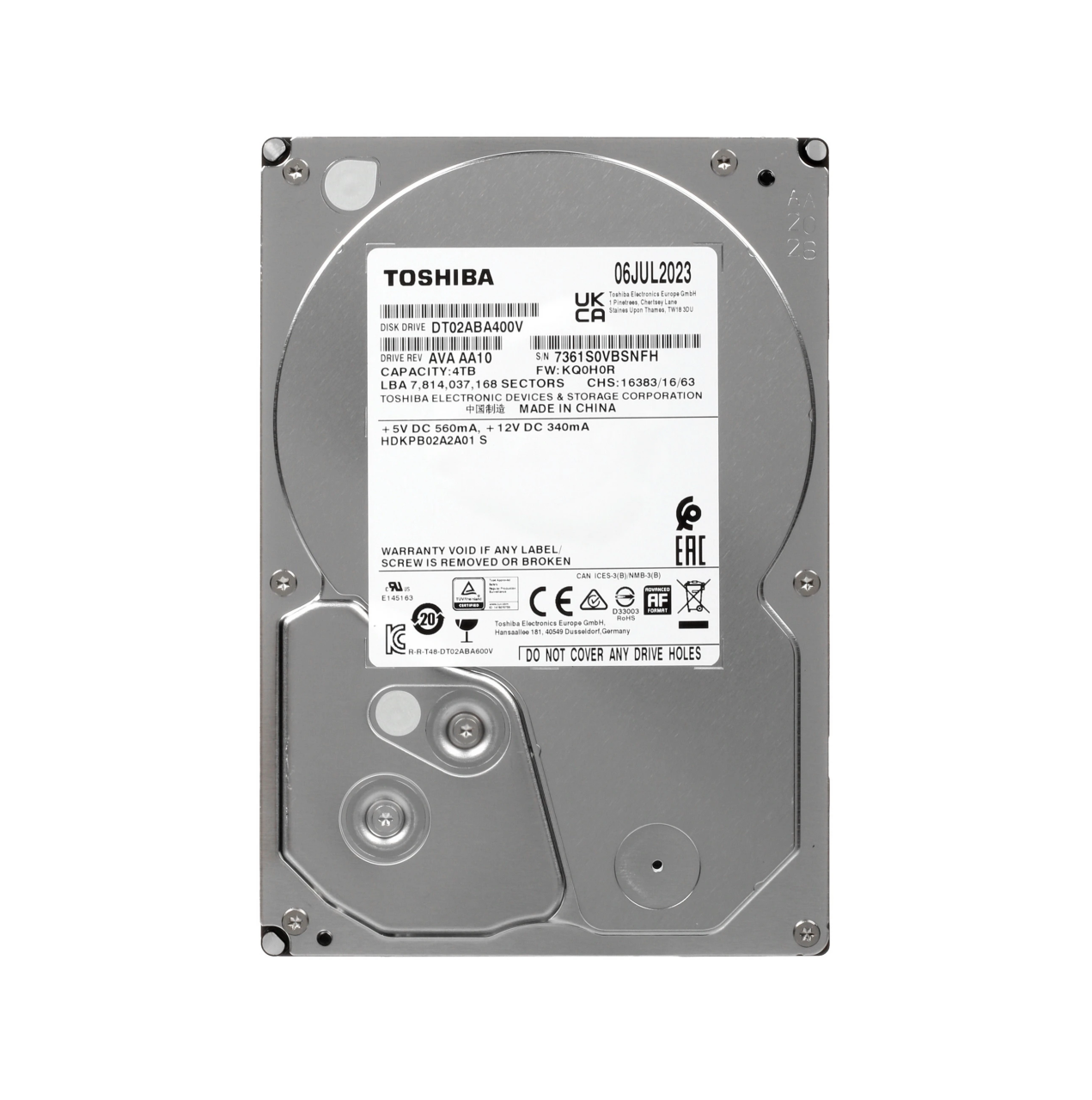Подключение диска выполняется через интерфейс SATA III. Конструкция накопителя Toshiba DT02-V [DT02ABA400V] обеспечивает низкую вибрацию и экономичное потребление энергии.
